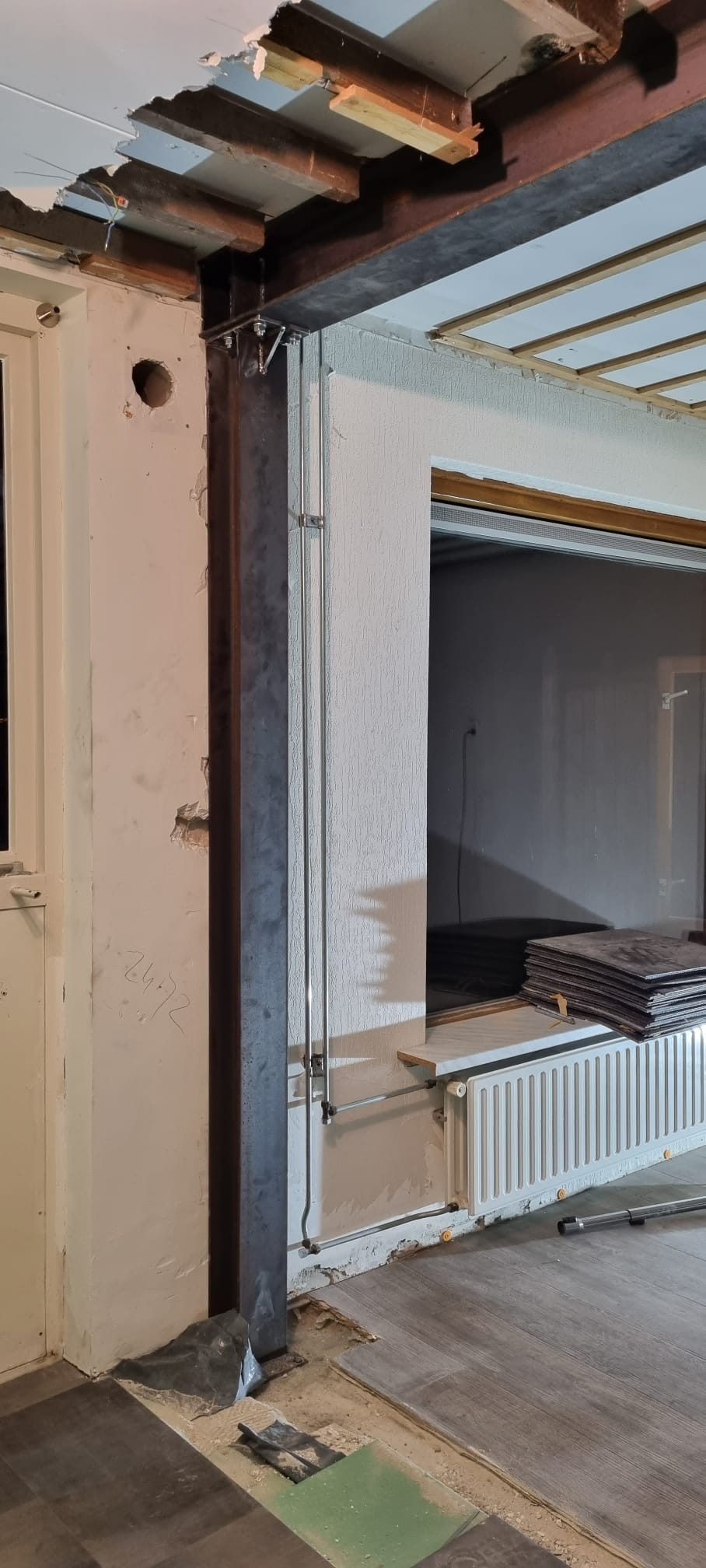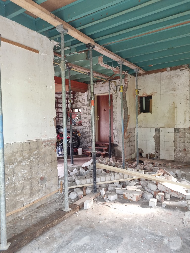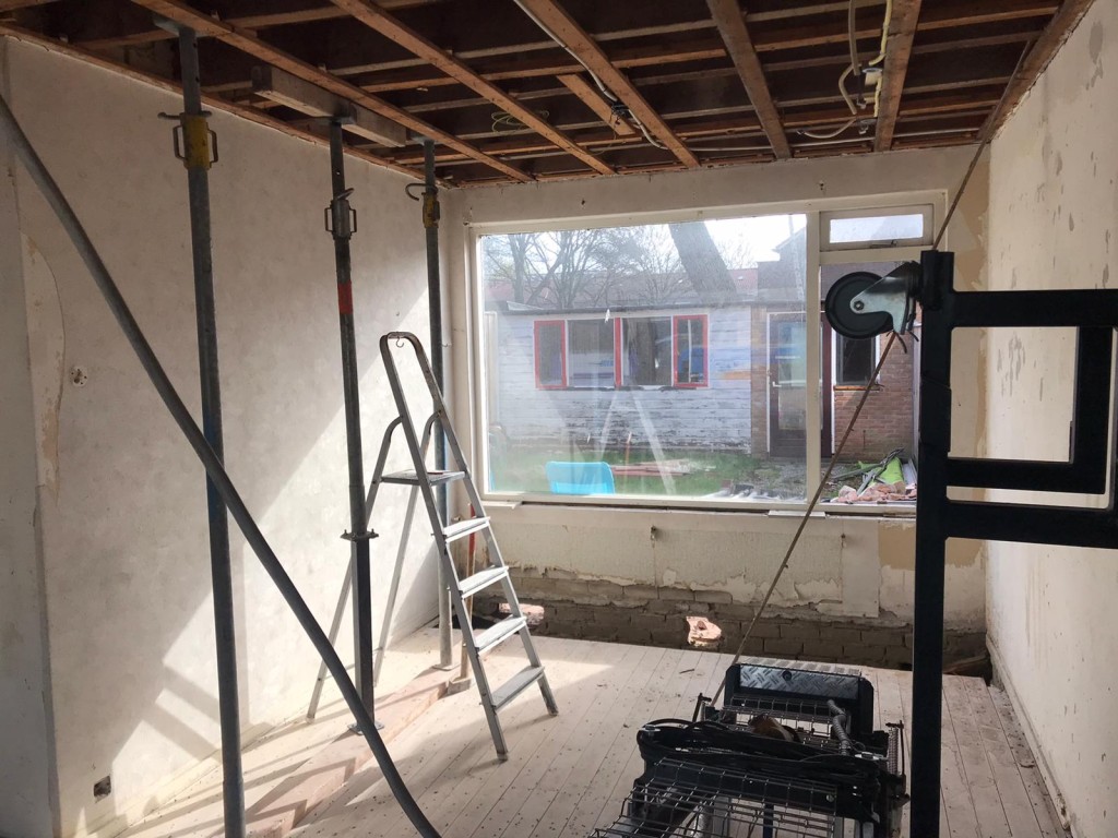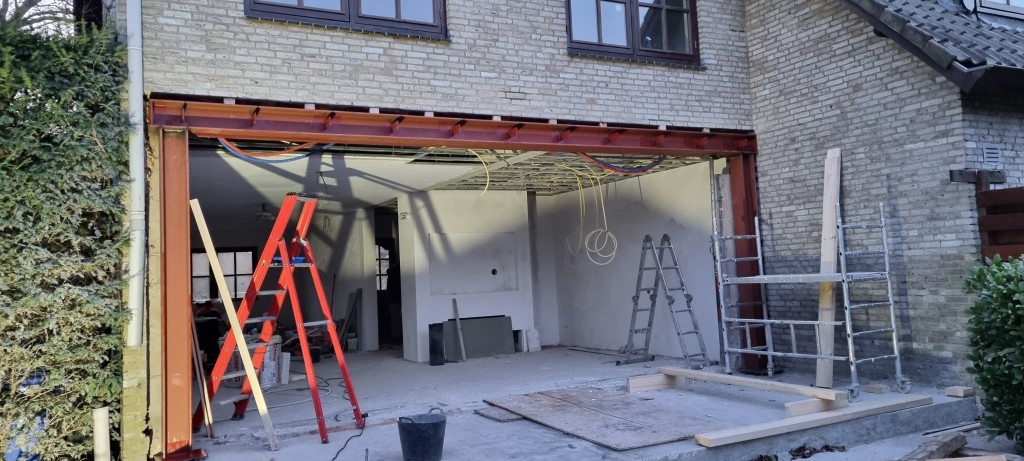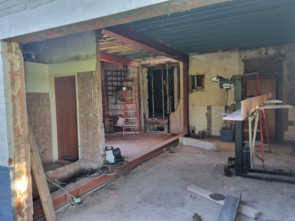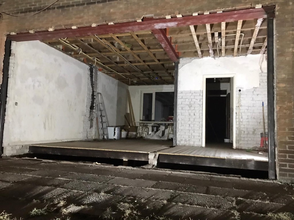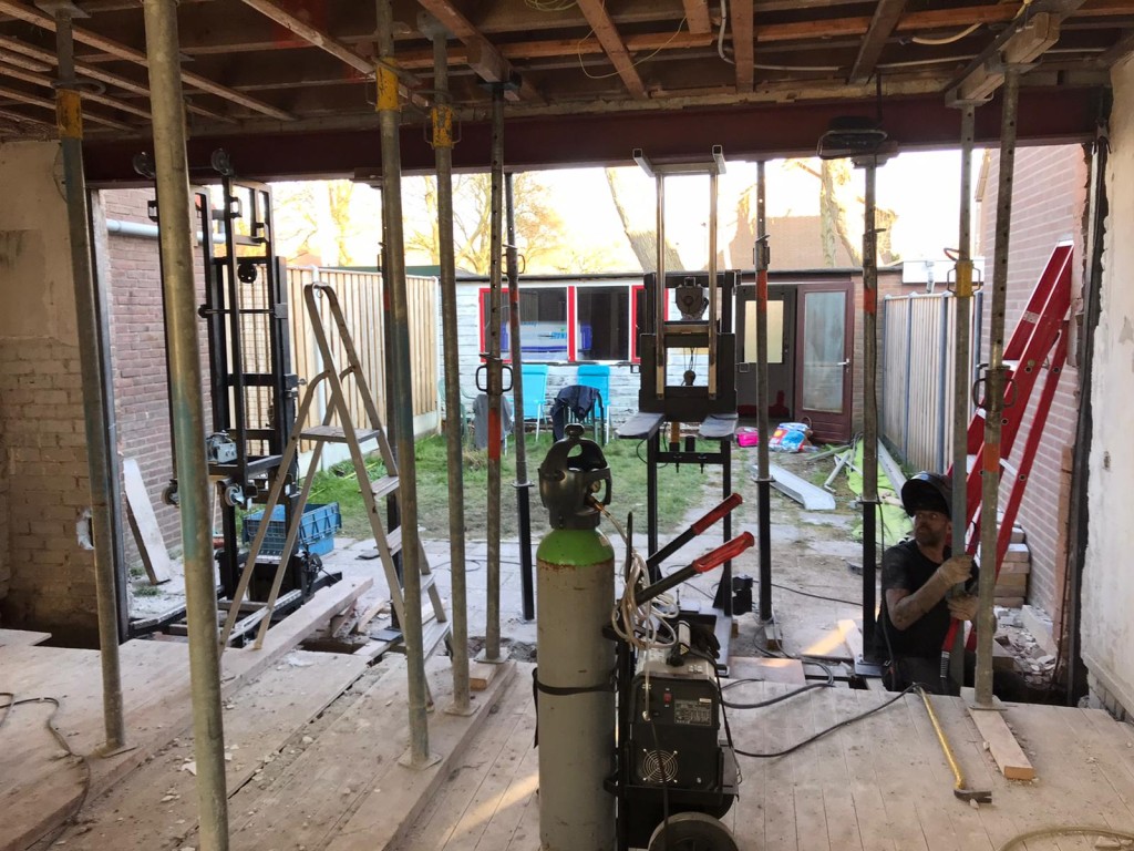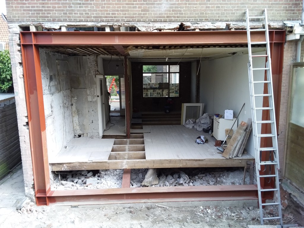 project Willemstad Sloopwerk draagmuur tussen keuken en woonkamer en aanbrengen draagconstructie met boutverbinding voor de industriele look