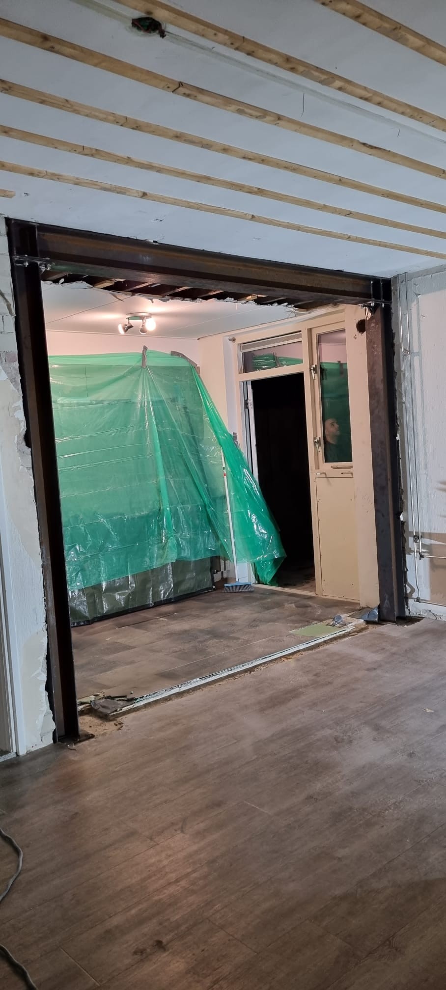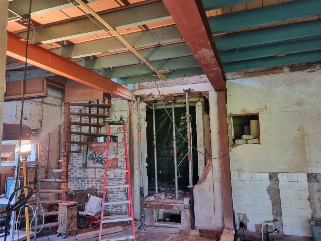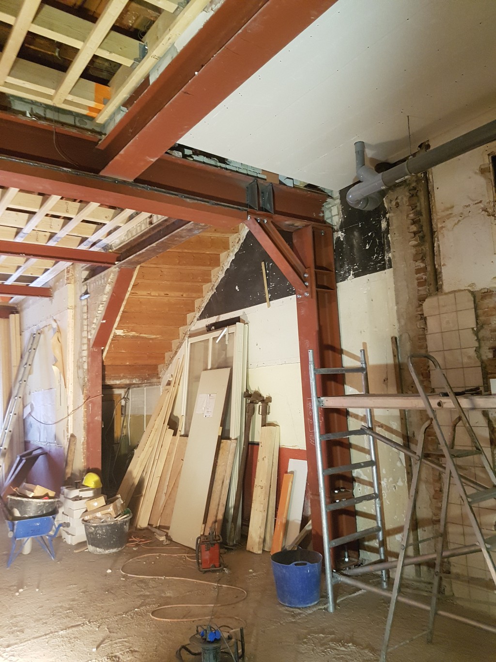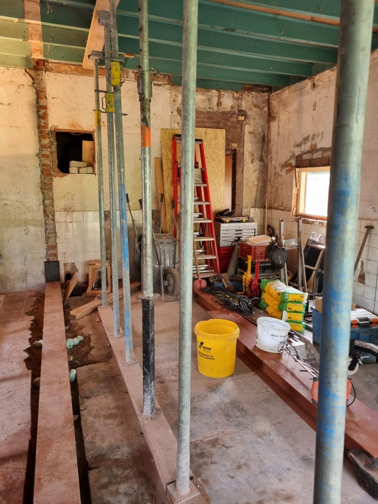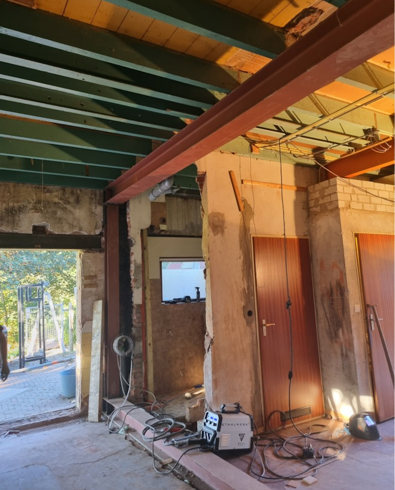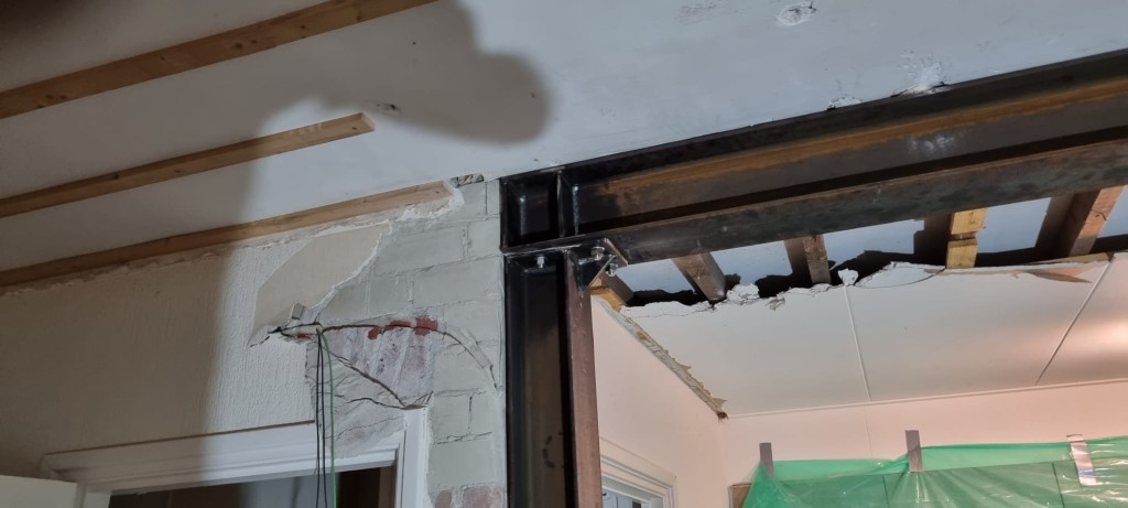 project Willemstad Sloopwerk draagmuur tussen keuken en woonkamer en aanbrengen draagconstructie met boutverbinding voor de industriele look