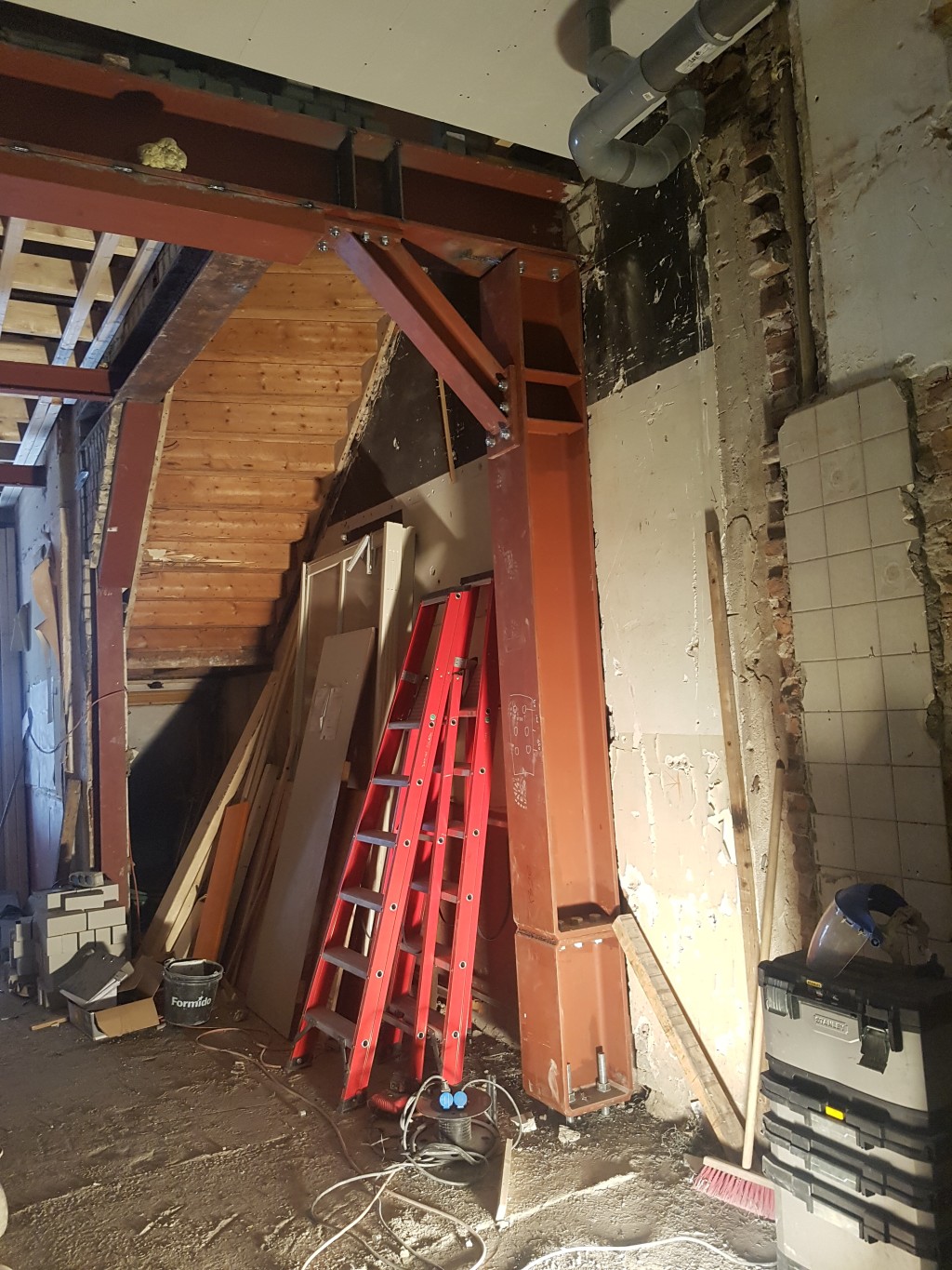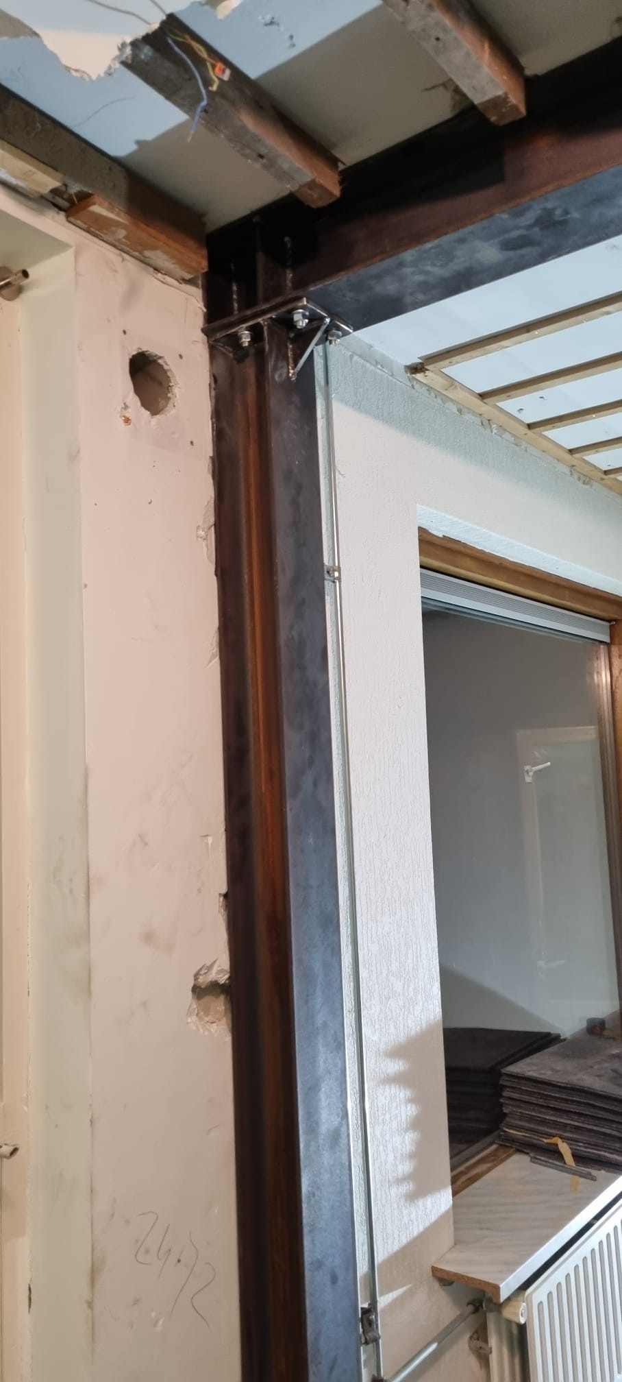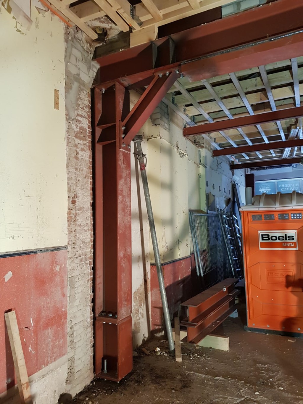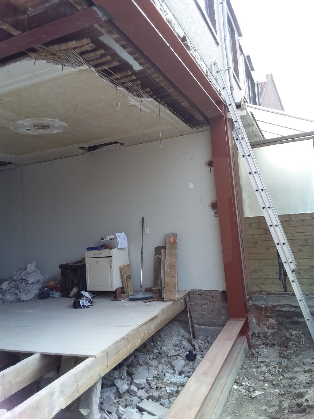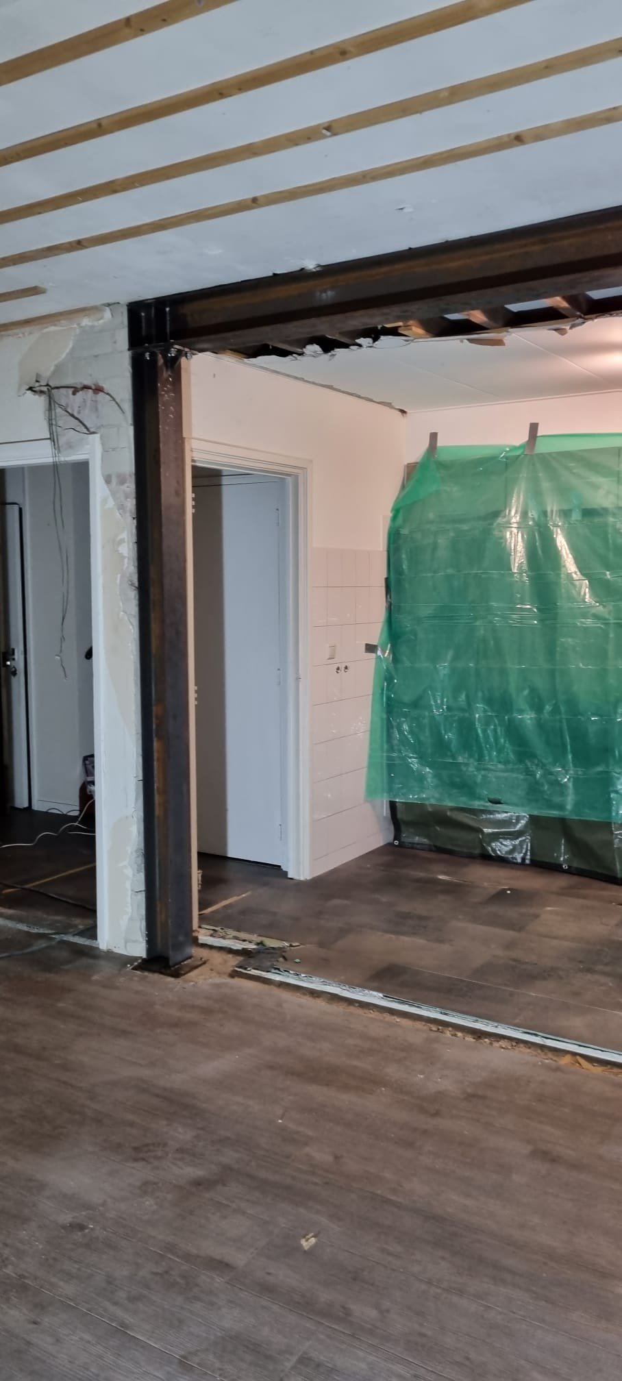 project Willemstad Sloopwerk draagmuur tussen keuken en woonkamer en aanbrengen draagconstructie met boutverbinding voor de industriele look