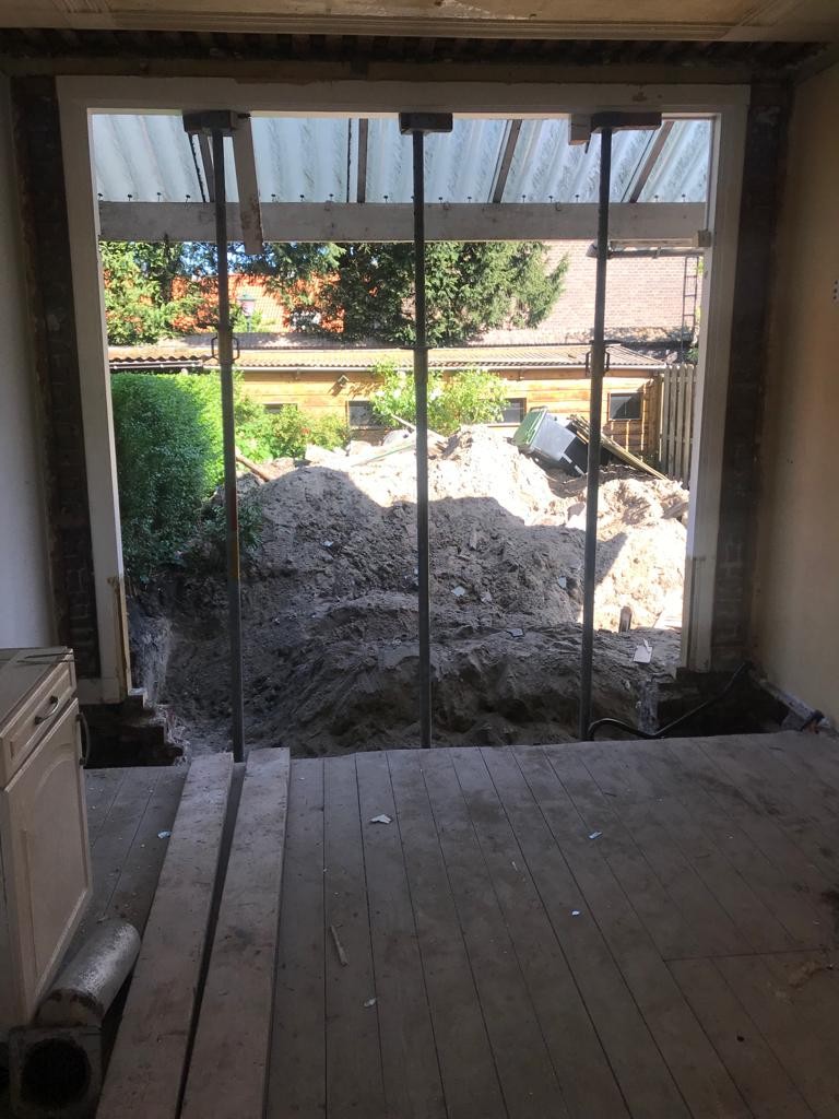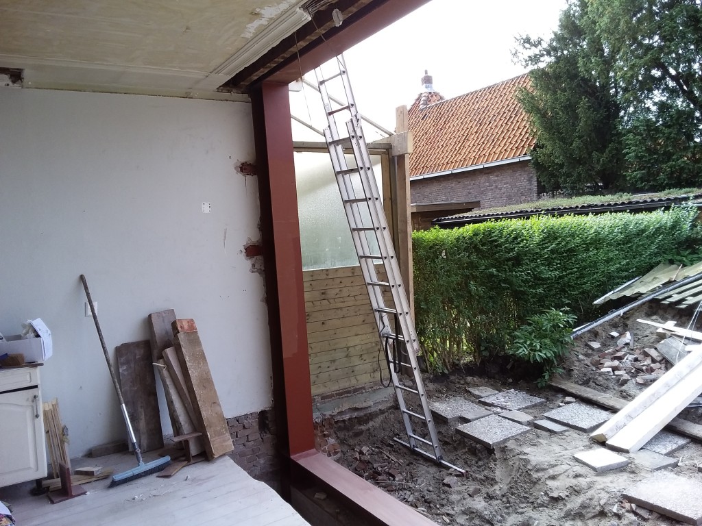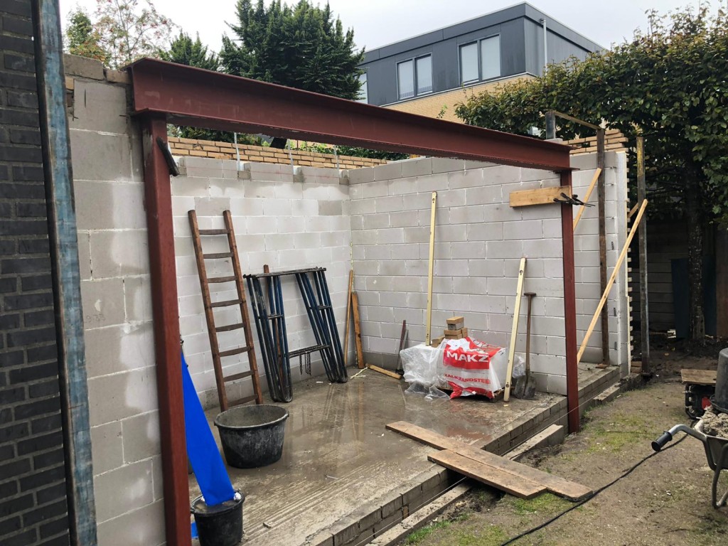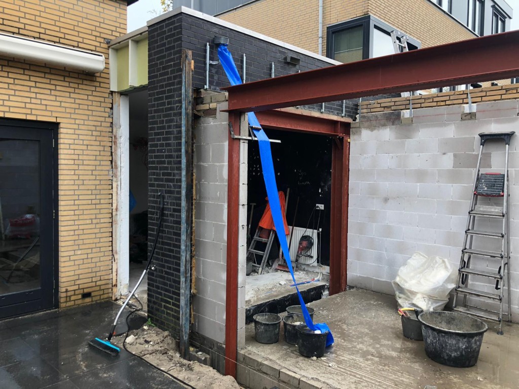 project Schiedam achtergevel en muur tussen keuken en woonkamer verwijderen en plaatsen van stabiliteitsportaal
